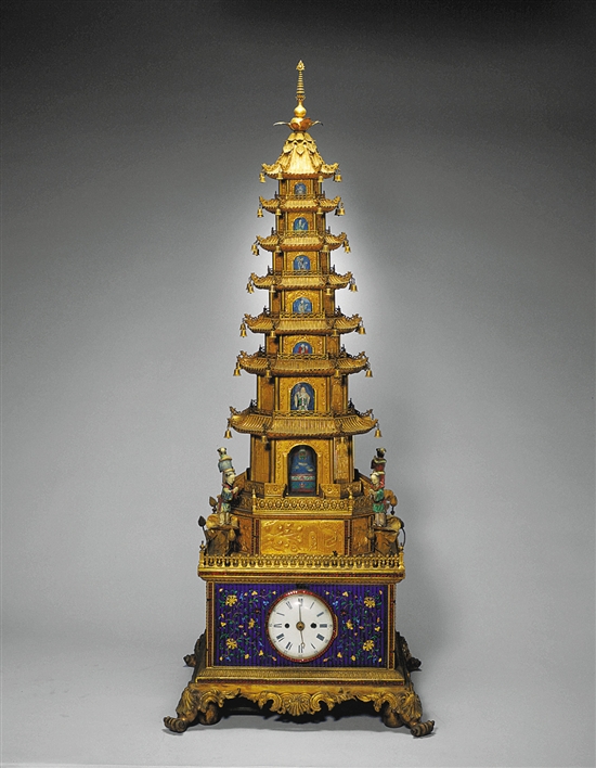 铜镀金珐琅升降塔钟 (故宫博物院藏)