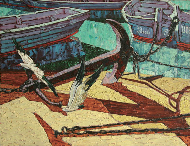 李宝瑞(1937—2016),辽宁省岫岩满族自治县人,自幼喜爱绘画,1965年考入中央工艺美术学院,1973年到黑龙江美协任专职画家。他的绘画作品题材多样,面貌多变,极具艺术想象力,画风独特,卓而不群。展览展出国画、油画、书法、水彩、素描、手稿等多种类型作品共60余幅,以及黄永玉、华君武、潘天寿等艺术家与李宝瑞的信札等,全面展示李宝瑞一生的创作成果和历程。图为李宝瑞1976年作品《江沿》。 (欣 闻)