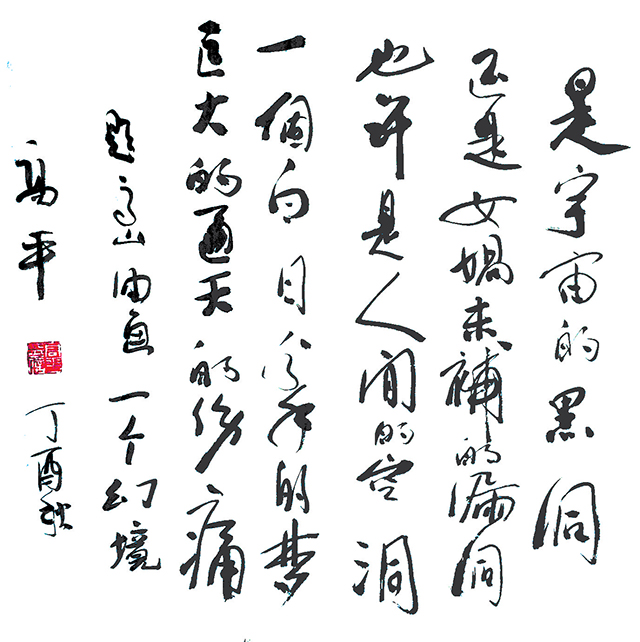 诗:“也许是人间的空洞/一个白日分手的梦/巨大的通天的伤痛。”