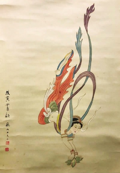顾飞92岁所绘的人物画《飞天》