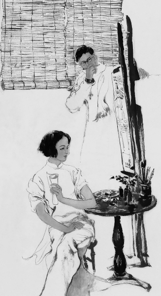 1982年对于金城来说是重要的一年,他创作发表了连环画处女作《四妯娌》。不仅如此,《连环画报》的编辑慧眼发现了他,邀请他创作连环画《明姑娘》。《明姑娘》改编自航鹰的同名小说,讲述先天失明的盲人姑娘叶明明帮助后天失明的大学生赵灿勇敢面对困难的故事。感人的故事、投缘的编辑,金城强烈地感受到了内心的召唤。复员!专心画画!