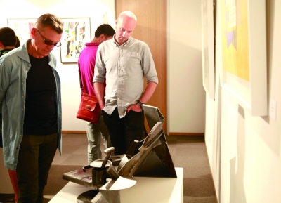 观众细细品味雕塑作品