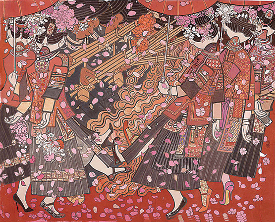 刘金贵参展作品《跳花场上》(中国画)