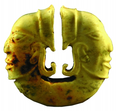 湖北石家河遗址出土的连体双人头像玉玦(方勤供图)