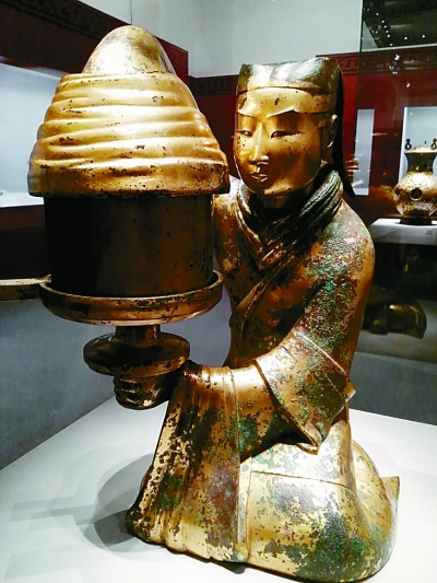 “秦汉文明展”中的长信宫灯 本报记者 李韵摄