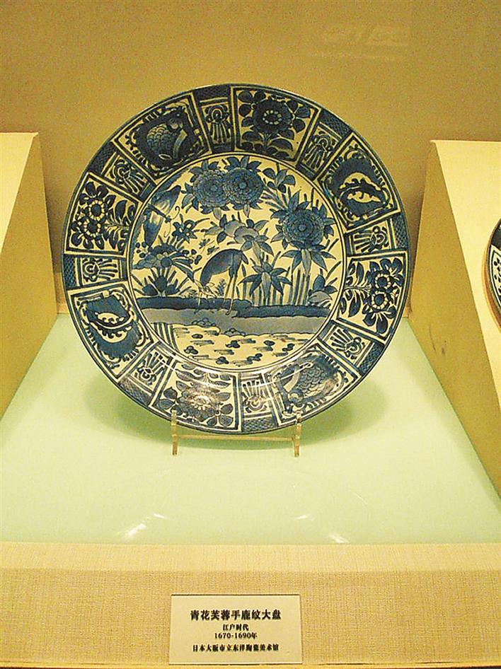 “有田烧”不仅结束了日本瓷器完全依赖从中国和朝鲜进口的时代,同时,也开创了日本瓷器出口的时代。当年“锅岛烧”特别爱模仿中国外销瓷的“芙蓉手”(明晚期分格开光青花盘,因盘边分格很像芙蓉花瓣而得此名),不仅样式像中国青花,一些产品还题“大明成化年制”、“大明嘉靖年制”、“大明万历年制”的号款和中国的“富贵长春”等吉祥款,冒充中国瓷器出口欧洲。