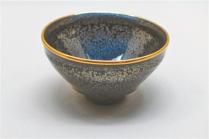 大阪市立东洋陶瓷美术馆收藏的宋代建窑“油滴天目”。据说是丰臣秀吉养子丰臣秀次用过的茶碗。