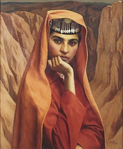 靳尚谊开创了中国油画新古典主义学派。他对古典的回归,既是面向欧洲的古典,也是面向中国的古典。他溯至欧洲油画的本源,探寻着文艺复兴以来大师们的用笔、色彩及意境,同时也将欧洲古典主义的典雅、静穆与柔和,连同中国传统的美学观念结合起来,形成了其鲜明的新古典主义风格。靳尚谊尤其擅长画人物,常常把人物置于精心提炼的环境、道具、服饰、姿态设计之中,无故作妍媸之貌,而刻画真实生动。他创作的人物作品同时极具艺术品格,通过洒脱的边线处理,形体转换,明暗关系,创造和谐、宁静、具有雕塑感和厚重感的现实人物,形成一种圣洁的崇高的美感。这幅《高原情》可谓靳尚谊代表作之一,与他最富盛名的那幅《塔吉克新娘》同属塔吉克人物肖像画,体现出艺术家对于理想审美的追求。
