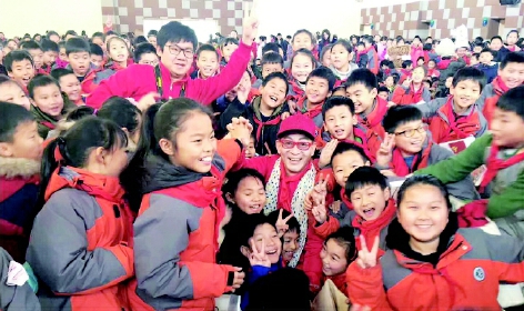 六小龄童和上海的小学生们在一起