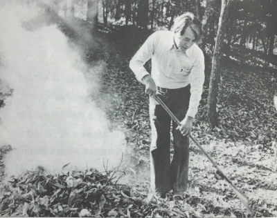 我一天到晩拿着竹笤帚在树下搂扒落叶,堆成几座小山,等到晴天,点火焚烧。夏天割的草堆在院子的角落里,作为地里作物的肥料,已经枯黄,相当潮湿,把这些枯叶和枯草一起燃烧,就不会烧成熊熊烈焰,而是冒烟,一整天噼噼啪啪响,有时突然啪地蹿出一股火苗,有时只是白烟袅绕。我有时用银纸包着土豆放进火堆里,有时是土瓜。还是挑一个形状合适的土豆洗净后用银纸包着放进火堆里有意思。