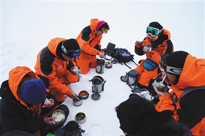剧组人员在南极吃工作餐