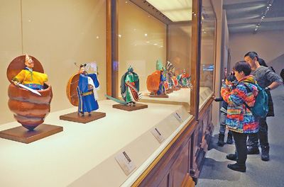 图为春节期间,观众在国家博物馆参观《匠心传承——徐竹初、徐强父子木偶艺术展》。