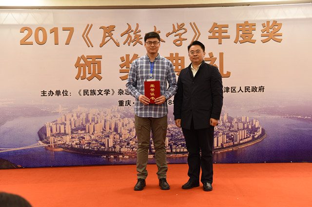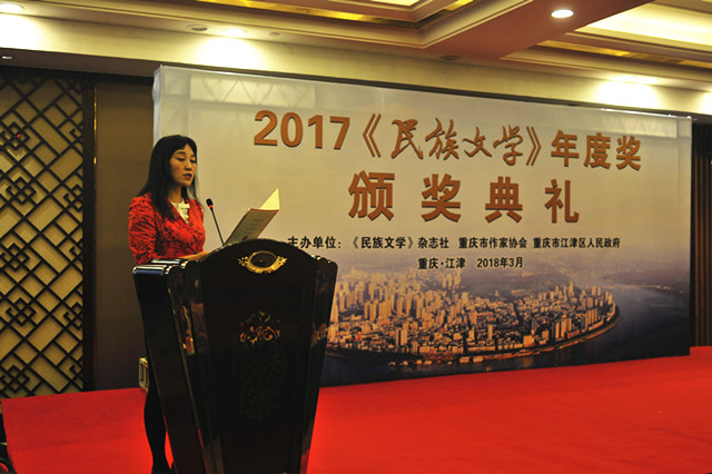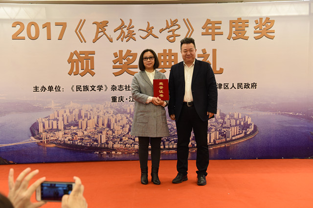 3月2日,2017《民族文学》年度奖颁奖典礼在重庆江津举行。活动由《民族文学》杂志社、重庆市作家协会和重庆市江津区人民政府共同举办。旨在挖掘与培养优秀文学力量,提升民族文学原创力,组织作家深入生活、扎根人民的同时,繁荣少数民族文学创作,用开阔而多彩的民族视野讲好中国故事。