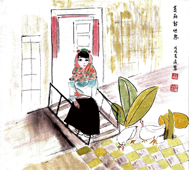 我画画有一个毛病,就是一幅画从来不画第二张。铺纸,研墨,提笔,一蹴而就,画成什么算什么,图得就是个痛快。昨天画的另一幅画,一个女孩下楼梯,由于没有把腿的弯度处理好,感觉女孩像个小偷,畏畏缩缩。怎么办呢,左思右想,终于想出了办法,叫女孩改穿裙子。兴奋地把画铺好,唰唰唰,手抖墨落,裙子画成。贴到朋友圈,竟有不少朋友赞叹。得意之余,也有些许的遗憾。心想,现在不是流行镂空的黑纱裙吗?要是不坐实,用薄而透明的墨处理可能会更好。我老师施胜辰的老师是叶浅予先生,有一次我说,老师,您的画和叶先生的真是如出一辙。老师慌忙说,要是和老师画得一模一样可就完了,要画出跟老师不一样的感觉才行。我知道老师所说的不一样就是创新。我也想创新一下,在画里加入自己的东西。可是思想迟到,墨透纸背,这次是无法再改了。于是安慰自己,嘿,这样也很好哇,穿了薄纱裙,就穿不了光滑的黑缎子了。