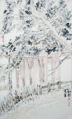 堰头村口(中国画) 刘佳