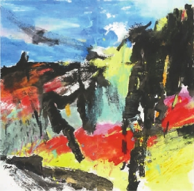 徐里的绘画,根源于20世纪张大千、刘海粟的泼墨泼彩传统,这一传统是在20世纪对西方绘画的引入和借鉴基础上形成的,它以中国画的写意笔墨为骨,引入西方绘画的色彩交响,较好地解决了色与墨的关系。作为油画画家出身的徐里,对笔墨色彩关系的理解和运用远胜于许多中国画画家,他的山水画,以墨为骨,以浓重而融合性的用色而著称。虽然倾情于色与光的交响,但徐里更追求传统文人的精神内涵,虽然描绘的是高山大川,但他并不以具体的地景风貌为标志,而是将内心的激情,不露痕迹地转化为中国山水画的自由精神。在他的笔下,对自然的喜悦和热爱,不经意地从画面中流露出来。徐里的绘画,重点在群峰大山,所以其画中的建筑与树林,与大山融为一体,在朦胧中既突出了作品的浑然气势,又让凤凰彩票发现了画家浓重而整体的用色之道。