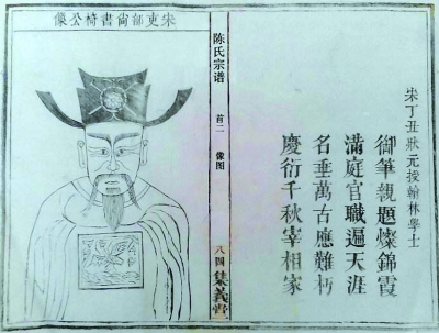 陈氏宗谱像图,出自1988年版《义陈宗谱》。唐宋时期江州义门陈氏家族,创造了3900余口、历15代、330余年聚族而居、同炊共食,是中国古代社会中人口最多、文化最盛、合居最长、团结最紧的和谐大家族。