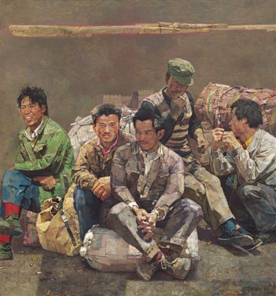 上世纪90年代中期,忻东旺以一个艺术家应有的敏感把视点锁定在“民工潮”这个大变动的社会主题上。当他看到越来越多的农民涌入城市,他意识到,“社会变革的因素已悄然渗入每一位农民的精神意识中,虽然贫瘠的土地难以改变他们的命运,但时代变革的步伐却已震颤了涌动的大地”。画家之所以一再选择这一主题,诚如他所说,“是因为在我看来这一社会景观是极具时代表情的,而艺术作品的艺术魅力和价值除了绘画本身的因素之外,更是应该承载反映时代和社会批判的责任”。
