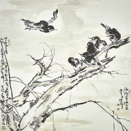 当时我正热衷于国画的研究及新文人画的倡导,第一届国画名家班已毕业,第二期名家班正在筹建。听了他的诉说,我准备着手解决这类困惑。那段时间,我以尹沧海作典型例子,与他交流,互证互学。我仔细分析了近现代国画教学与创作的根本失误,告诉他,这原来是文化差异引起的误读和张冠李戴。所谓民国以来的绘画教育,其致命弱点是将“摹物”当成一切“造型”的基础,让物理化的认知成为限制思考的桎梏。我还告诉他,绘画是特定文化的产物,国画只能是中国文化的表率,绘画的终极目的只能是心灵的文化倾诉与生命的自我实现。创造当代国画、画好自己国画的唯一途径只能是提高文化素养,修持品格,掌握真正的国画理法、意趣,具体途径便是做人、读书、写字、画画。好在他真的明白了这些道理,数年下来,坚持读书、写作,他的文章与绘画都有较大长进,从茫然的粗糙渐成有规矩的找寻。后来,他又受教于范曾先生门下,在读博士的时间里更加系统地阅读了历史文献与古代诗文,增强了文史哲的基础与触类旁通的功力。