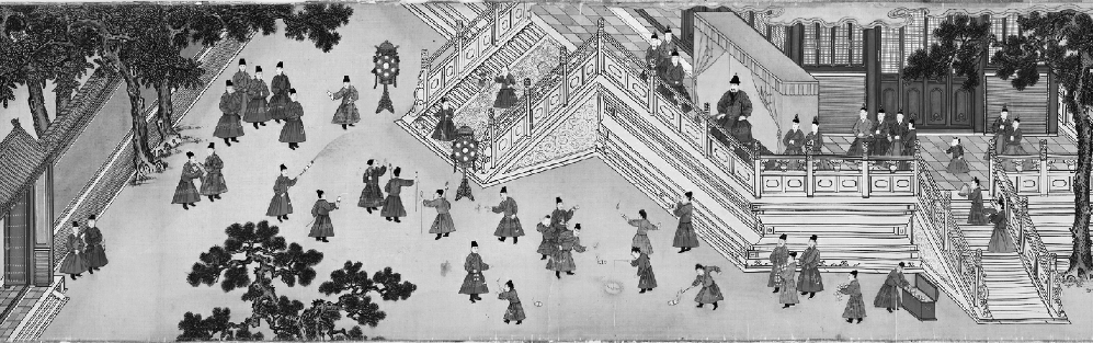 Õâ·ù³¤¾íΪ¾î±¾ÉèÉ«£¬×ݳ¤37ÀåÃ×£¬ºá³¤630ÀåÃ×£¬³ö×ÔÃ÷´ú¹¬Í¢»Ê¦Ö®ÊÖ£¬Ãè»æÁËÃ÷³É»¯¶þʮһÄêÔªÏü½Ú£¬Ã÷ÏÜ×ÚÖì¼ûÉîÔÚ¹¬ÖÐÓÎÀÖÇì×£µÄ³¡Ã棬ÊÇ·´Ó³ÁËÃ÷´úÃñË×ÎÄ»¯µÄ¼ÍʵÐÔµÄÕä¹ó»×÷¡£