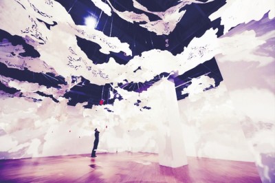 艺术家JUJUWANG的装置艺术作品《云屋》。作品的基本材料是有着800余年传承历史的国家级非遗———手工傣纸,艺术家以现代激光雕刻技术将其进行造型雕刻制作而成。参观者可身临“云境”,感受傣纸制成的不同大小的“云”,感受被云层环绕的感觉。