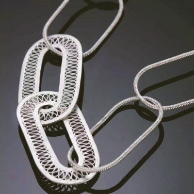 荷兰设计师与苗族银饰锻造技艺传承人共同合作的当代银饰作品,简约、大气。