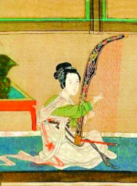 箜篌最辉煌的岁月是在汉唐时期,即使在民间也很流行,甚至会弹奏箜篌是衡量一个女子有才学的标志之一。东汉的乐府诗《孔雀东南飞》一开头即是:“孔雀东南飞,五里一徘徊。‘十三能织素,十四学裁衣,十五弹箜篌,十六诵诗书……’”