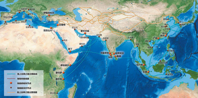 国家文物局水下文化遗产保护中心提供的海上及陆上丝绸之路地图