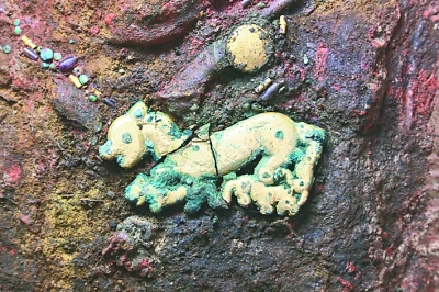 出土的虎形包金铜饰牌