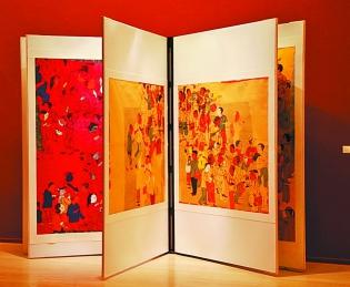 “艺术家书”的展陈新颖别致,同一个画家的几幅作品装裱成一本书的模样,观众必须转动展板来观看一幅一幅画,如同打开一本原汁原味的画册。观看,变成了翻阅,一种手与心的连接建立起来,亲近感也油然而生。