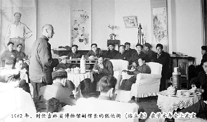 1962年,时任吉林省博物馆副馆长的张伯驹(站立者)在学术年会上发言。