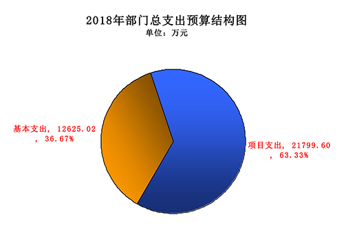凤凰彩票平台登录入口2018年支出预算34424.62万元,其中:基本支出12625.02万元,占比36.67%;项目支出21799.6万元,占比63.33%。
