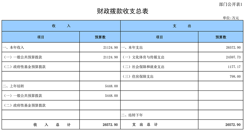 一、财政拨款收支总表