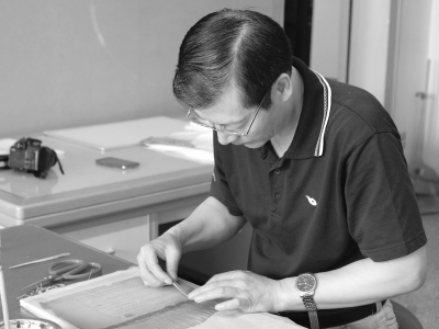 专心工作的古籍修复师 谢昱 供图