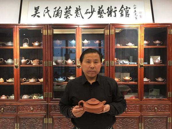 宜兴有天土,吴门出陶人。继陶瓷、紫砂已成国艺。一盈把握,诸子尽在一掬之间,上兑庄老之露、下泡儒佛之泉。禅意不看红尘事,一捧紫砂释天机。在这一系列荣誉的背后,是吴海龙老师最紫砂艺术的喜爱,对中国非物质文化遗产继承的责任心,促使他孜孜不倦,一往无前的去专研,通过各种机会途径与紫砂界的大师们合作交流,拓展他的视野和创作灵感。与此同时,他积极走出国门,让紫砂文化在一带一路的东风下展示出他独特的魅力,吸引着国际紫砂艺术爱好者的目光。