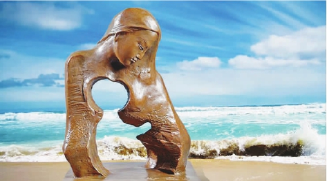 雕塑与其他艺术形式相比有一个鲜明的特点,即其特殊的立体形式,这种立体形式让其与周围环境的深度互动成为可能,而如何发挥其优势,让其在固定的空间中发挥艺术魅力同时又增强城市空间的审美性,就成为雕塑展览的新课题。在“公共雕塑邀请展”中,策展人卢征远特意选择了22位知名雕塑家的36件具有象征意义的雕塑作品参展,配合着博鳌融创·金湾的碧海、沙滩,以独特的设计思路体现出中国传统审美品格与现代化开放眼光的统一,追寻着海上丝绸之路路线的大体布局,展示出艺术家对传统文化的皈依和对现代“丝路”文化的期待。