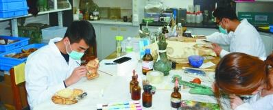 分清了马骨,接下来他们就开始分析马骨的保存情况。通过一系列分析他们得出:这些马骨保存在弱碱性的土壤中,马骨表面附着的石膏、方解石等来自土壤钙积层,还有金含量较高的金箔。马骨的抗裂、抗压、抗折等机械性能大大降低,因此断裂,甚至是残缺。这也为此次修复找到了方向:对马骨进行加固,是修复的重要环节。
