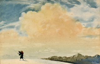 艰苦跋涉的夏尔巴(纸上水彩、蛋彩 1914 印度国家现代艺术馆藏) 拜尔斯沃·森 作