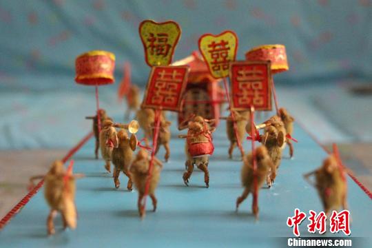 “大圣娶亲”是杨凤岩最得意的作品之一。他受朋友婚宴启发,塑造27只毛猴生动还原了古代结婚场景。抬轿、敲锣、打鼓……浩浩荡荡的仪仗队栩栩如生。除此之外,体育竞技、市井生活等也是他常设计的情境。
