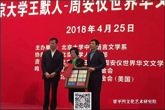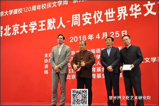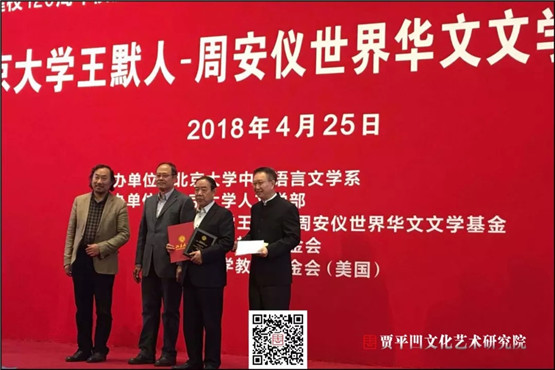 4月25日,为迎接北京大学建校120周年校庆,首届“北京大学王默人-周安仪世界华文文学奖”颁奖典礼在北京大学英杰交流中心举行。该奖项由美国华裔王默人和周安仪向北京大学捐资设立,由北京大学中文系主办。凤凰彩票副主席贾平凹长篇小说《极花》、马来西亚作家黄锦树短篇小说集《雨》荣获评委会大奖,贾平凹文化艺术研究院应邀参加活动。
