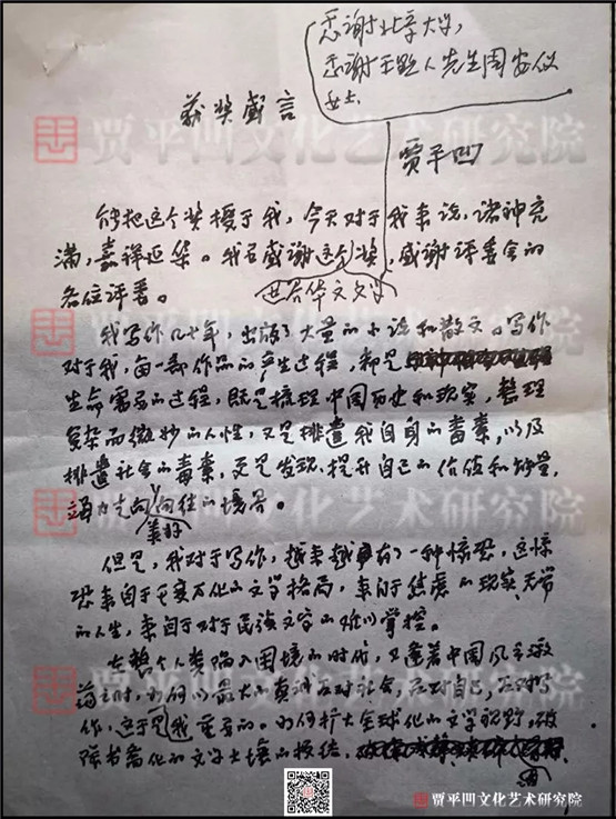 贾平凹发言手稿