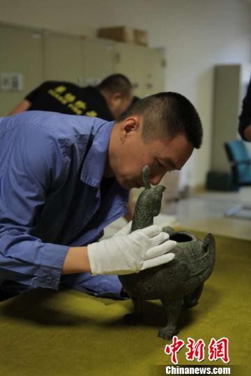9日,在参加了为期10天的北京大学120周年校庆特展《寻真——北京大学考古教学与科研成果展》后,被誉为山西博物院“镇馆之宝”的晋侯鸟尊平安返回太原市,此次随晋侯鸟尊返回的还有其尾部象鼻本身残缺的残件。山西博物院供图