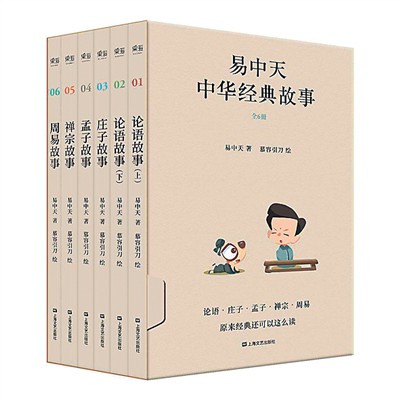 《易中天中华经典故事》(上海文艺出版社)是一套我颇为中意的国学解读本,包括《论语故事》《孟子故事》《庄子故事》《禅宗故事》《周易故事》,其中《论语故事》分为上下两册。据易中天介绍,丛书将中华优秀传统文化书目——《论语》《庄子》《孟子》《六祖坛经》《金刚经》《周易》六本书的核心内容以动漫形式集中呈现。