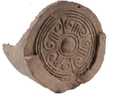 奇台县石城子古城遗址出土的汉代云纹瓦当。
