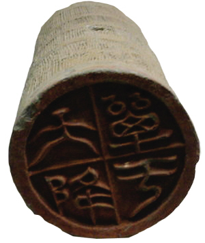 1955年,内蒙古自治区包头市召湾汉墓出土“天降单于”瓦当,充满浓郁的边疆风格。这件西汉时期的瓦当,直径17.1厘米,圆形,后有筒,筒中部有瓦钉孔;正面宽沿,被十字格线分成四区,每区内一阳文篆字,即“单于天降”四个字。