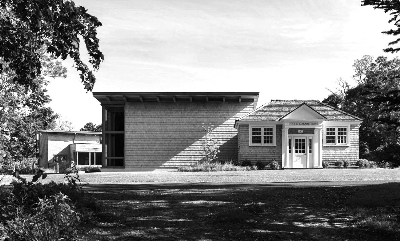 马萨诸塞州伊斯特姆公共图书馆。该馆于1898年1月正式开馆,最初的馆舍仅有300平方英尺。随着馆藏和读者的增加,图书馆先后建造了两处馆舍。为了满足社区的需求,设计团队对该馆建于20世纪80年代已有些过时的馆舍进行了改建。通过改造,图书馆的面积增加了一倍,室内和室外的光线也得到充分利用,该馆还获得了美国绿色建筑金牌认证。由于该馆最初的馆舍已入选美国国家历史名胜名录,因此改造中更为关注历史建筑的风格协调等问题。大部分新建筑都位于老馆舍的后方,这让图书馆新老建筑整体保持协调。这次改造充分利用了图书馆原有的滨水设施,同时最大限度地减少了道路上小型建筑物的视觉冲击。通过使用雪松木瓦、壁板以及青石地板等材料,将当代结构与历史建筑结合在一起。
