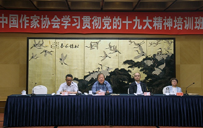 培训期间,学员们认真细读了党的十九大报告和《中国共产党章程》等文件,观看了《厉害了,我的国》和《大国外交》等专题片。中国领导科学研究会副秘书长、中国领导网执行总编辑程冠军,中央党校副教授李彬彬分别为学员们作了题为《学习十九大精神,推进“四个伟大”》和《〈共产党宣言〉与共产党人的历史使命》的报告。在分组讨论时,学员们结合各自的思想和工作实际,交流了学习体会,研究讨论在作协工作、文学工作中贯彻习近平新时代中国特色社会主义思想和党的十九大精神的具体举措。李云雷、李晓东、李墨波、徐可、霍俊明等先后作了大会交流发言。