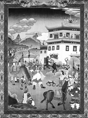 很快,以格萨尔兄长嘉察协噶和总管王绒察查根为首的岭国30位英雄应召前来。除晁通外,大家都认为是凶兆,决定派出长、仲、幼系各路骑兵到霍尔观察动静。