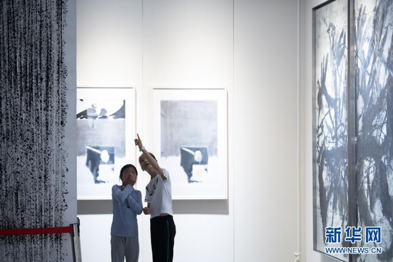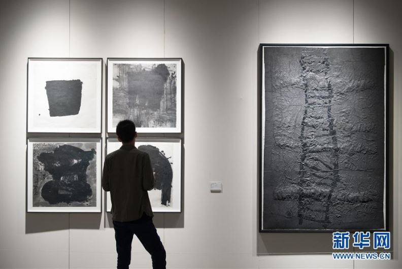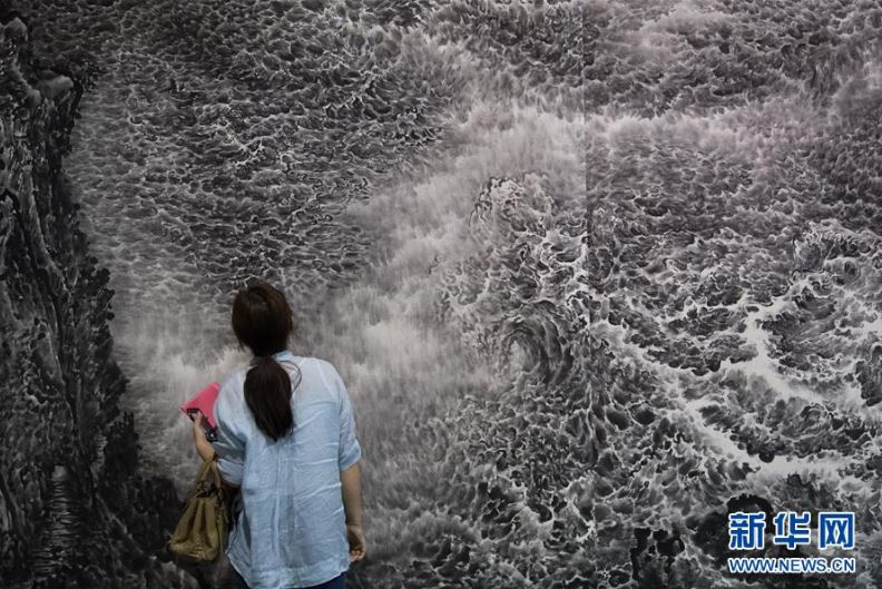 5月24日,观众观看参展的水墨作品。当日,以“水墨无极”为主题的首届艺术西湖·国际水墨博览会在杭州和平国际会展中心举行,展出百余名艺术家的水墨作品。