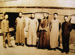 1929年10月,弘一法师(右三)与友人在宁波轮船码头合影。 宁波博物馆供图